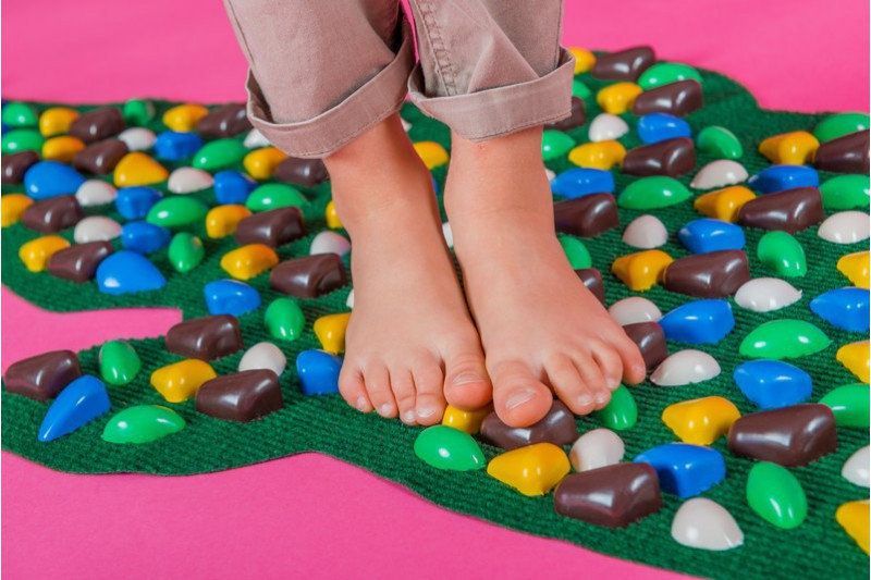 Качественный массаж приносит не только пользу человеку, укрепляя здоровье и поднимая жизненный тонус. Он делает нас сильнее, выносливее, значительно укрепляет мышцы, качественно влияет на психоэмоциональное состояние и преображает кожу. А если для выполнения упражнений использовать удивительно позитивный коврик «Крокодил», то скучное занятие превратится в настоящий праздник, причем, со значительным терапевтическим эффектом. Тренироваться на данном островке счастья с удивительно яркими и гармоничными камешками можно в любом месте, например, в детской комнате, гостиной или на природе. Вместе с малышами, которым очень показан данный массаж для укрепления стопы, профилактики сколиоза, а также нарушений опорно – двигательного аппарата, рекомендуются занятия и для взрослых. Совместные, совсем несложные тренировки снимут усталость, разомнут мышцы, вернут бодрость, а также нейтрализуют напряжение в позвоночнике. А еще, позитивный экологичный коврик поможет быстро и надолго снять стресс, беспокойство, запустить защитные функции иммунной системы и просто восстановить утраченную работоспособность. Отдельное внимание уделяется массажу стоп. Например, ученым известно, что на ней находятся практически 70 тысяч нервных окончаний, ее считают высоко-рефлекторной зоной. Поэтому ступая по ковру, у человека улучшается кровообращение, повышается эластичность мышечных волокон. А еще, по наблюдениям наших клиентов самочувствие улучшается практически сразу после первого сеанса. А все потому, что занимаясь на приятной, не ранящей кожные покровы поверхности, от стоп освобождаются ненужные роговые чешуйки эпидермиса. И естественным образом уходят отработанные посторонние частицы, повышая кожно-мышечный тонус. Отличный результат демонстрируют занятия против таких недугов, как вальгусная и варусная постановка стоп, а также коварного плоскостопия. Массажный коврик «Крокодил» от компании OnhillSport влияет на обмен веществ, укрепляет связочный аппарат суставов, а также предупреждает повреждение хрящевой ткани, то есть предупреждают образование ранних артрозов. Обратите внимание, если в вашей семье кто-то уже подвергся атаке данного заболевания, немедленно займитесь профилактикой. Неравномерная поверхность - имитация морских камней, поможет вновь окунуться в атмосферу приключения и поднимет настроение. А если полежать на выпуклостях, то можно отлично отдохнуть и разгрузить позвоночник. Если систематически уделять внимание малышу и заинтересовать его в физических упражнениях, то можно значительно восстановить утраченные по причине болезней рефлексы и одновременно улучшить походку. Основные преимущества: Массажный коврик, изюминкой которого является эффект гальки, выполнен из высокопрочного современного материала. Он прошел контроль качества и отвечает всем параметрам безопасности. На плотной слегка шероховатой ткани зеленого цвета, надежно закреплены среднего размера «камушки». Они максимально эффективно воздействую на стопу, и повторяют ее анатомическое строение. Такие неровные поверхности помогут избавиться от аритмичной и асимметричной ходьбы. Коврик выполнен в форме популярного животного - крокодила. Он имеет универсальные размеры, которые удовлетворяют запросам, как взрослого, так и ребенка. При выполнении упражне