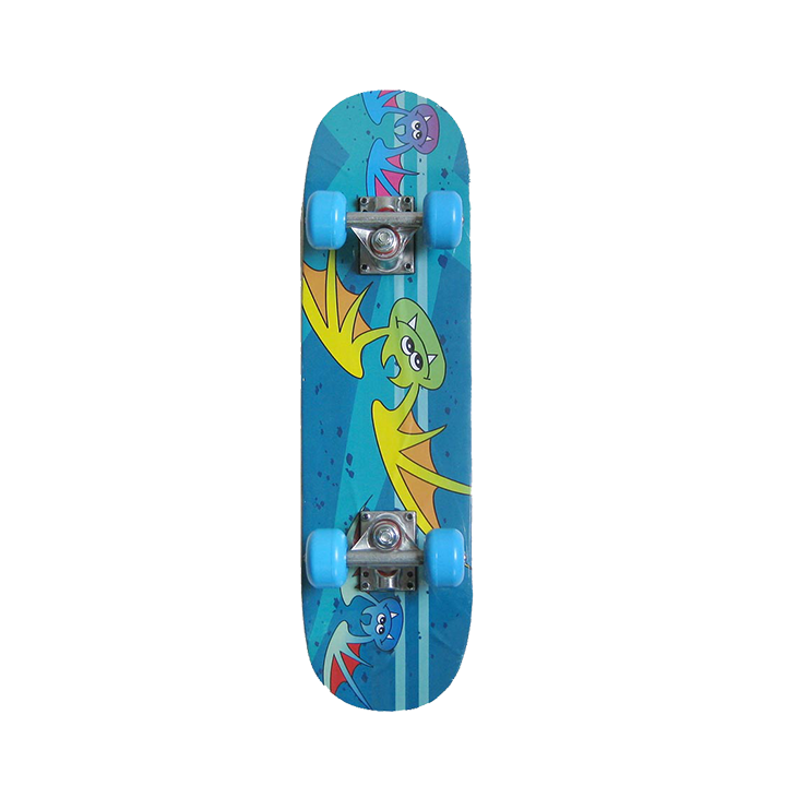 Деревянный скейтборд Profi создан не только для городских и парковых покатушек, но и для выполнения небольших трюков. Крутой дизайн не оставит никого равнодушным — верхняя часть деки (доска) выполнена в черном цвете и покрыта антискользящей шкуркой, а нижняя часть удивит всех яркими рисунками. На таком скейте трудно удержаться от прыжков и не засветить рисунком. Подшипники 608 Z защищены от попадания грязи, поэтому скейт прослужит столько, сколько можно при аккуратном использовании.