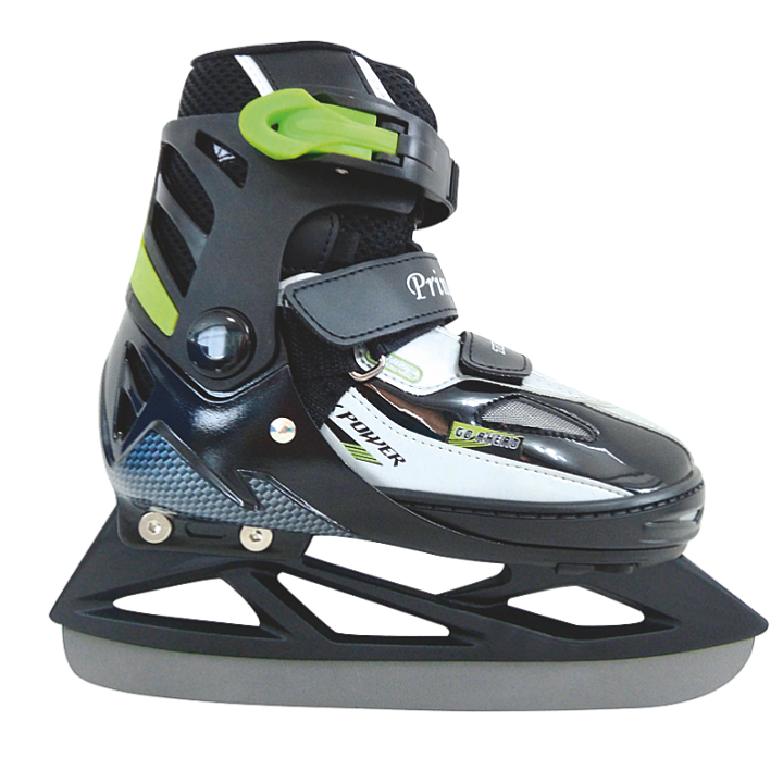 Коньки Prince – черный цвет в сочетании с зеленым и белым смотрится очень стильно. Каркас конька сделан из пластика и, конечно же, поможет лучше передавать усилия. Материал ботинка из искусственной кожи и нейлона. Фиксация конька на ноге состоит из трёх частей, шнуровка, липучка и бакля. Коньки достаточно легкие и маневренные, это позволит ребенку с легкостью держать равновесие. Материал лезвия состоит из легированной стали. Размерный диапазон: 27-30, 31-34, 35-38, 39-42.