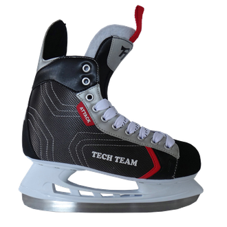Коньки для занятий хоккеем Attack будут отличным вариантом для того, чтобы начать заниматься спортом! Ведь хорошая цена и приемлемое качество это главное преимущество от бренда Tech Team. Материал ботинка из нейлона и поливинилхлорида. Ударостойкая пластмасса на мысу защитит ноги от непредсказуемых попаданий шайб. Внутри ботинок обшит теплым велветом. Удлиненный язычок из фетра с винилом. Коньки легко одевать и снимать, благодаря специальным скользким шнуркам. Лезвие конька из нержавеющей стали и отлично заточено. Большой размерный ряд от 37 до 46 размеров.