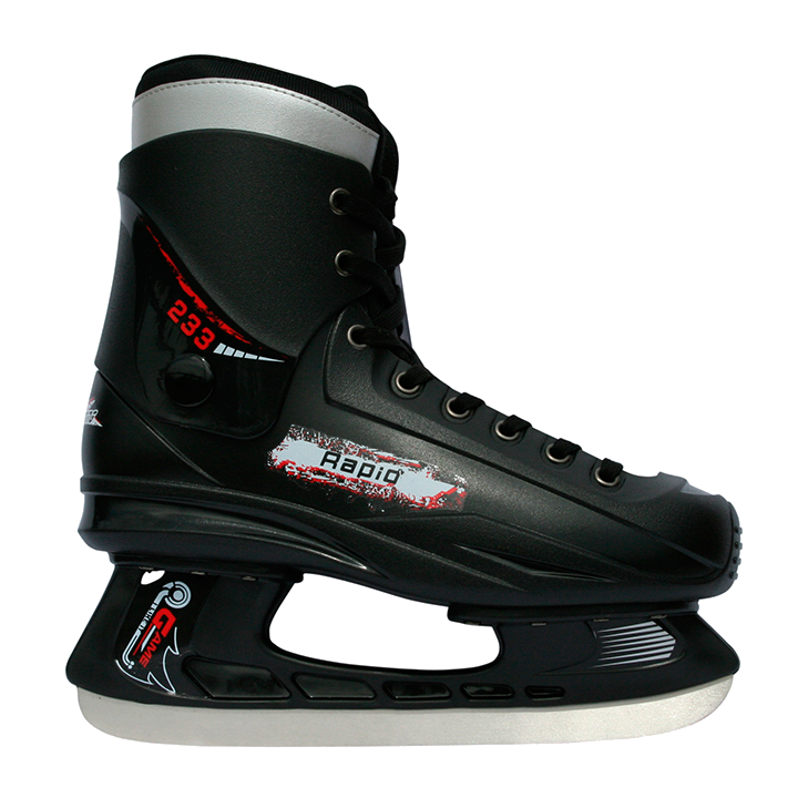Коньки Rapid от российской компании Tech Team созданы специально для тех, кто хочет извлечь максимум, играя в хоккей. Черный универсальный цвет отлично подойдет к любой экипировке. Материал ботинка сделан из полиуретана высокого качество, который обладает необходимыми амортизационными свойствами, и придаст эластичности. Благодаря съемному утепленному сапогу, Вы будете чувствовать себя комфортно в холодную погоду. Интегрированная подошва полностью воссоединяет все части ботинка. Двухстаканная рама не только облегчит всю конструкцию конька, но и добавит ещё больше прочности. Главной особенностью коньков является лезвие из углеродистой стали, которая не содержит легированных материалов, и не будет деформироваться при низких температурах. Защищенный мыс изготовлен из ударостойкой пластмассы, для минимального травматизма. Большой выбор размеров: 34-47.