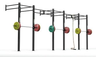 Функциональная рама совмещает в себе силовой снаряд и снаряд для выполнения упражнений из гимнастической составляющей кроссфита. Также она дополняется навесным оборудованием: брусьями, упорами, мишенями, гимнастическими кольцами, канатами и т.д.