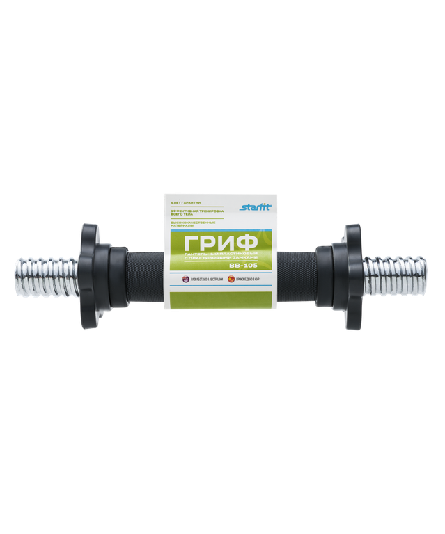 Купить Гриф гантельный BB-105, металлический, с пластиковыми замками, 25 см в Москве недорого!