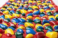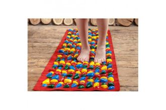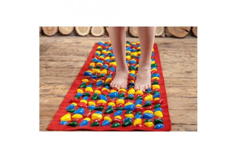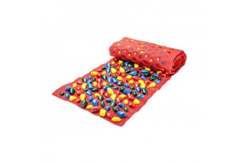 Коврик-дорожка с цветными камнями является одновременно прекрасным массажером для ног и развивающей игрой для детей, она нравится всем без исключения малышам.